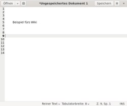 Gedit mit den Standardeinstellungen zeigt eine ungespeicherte Datei an.